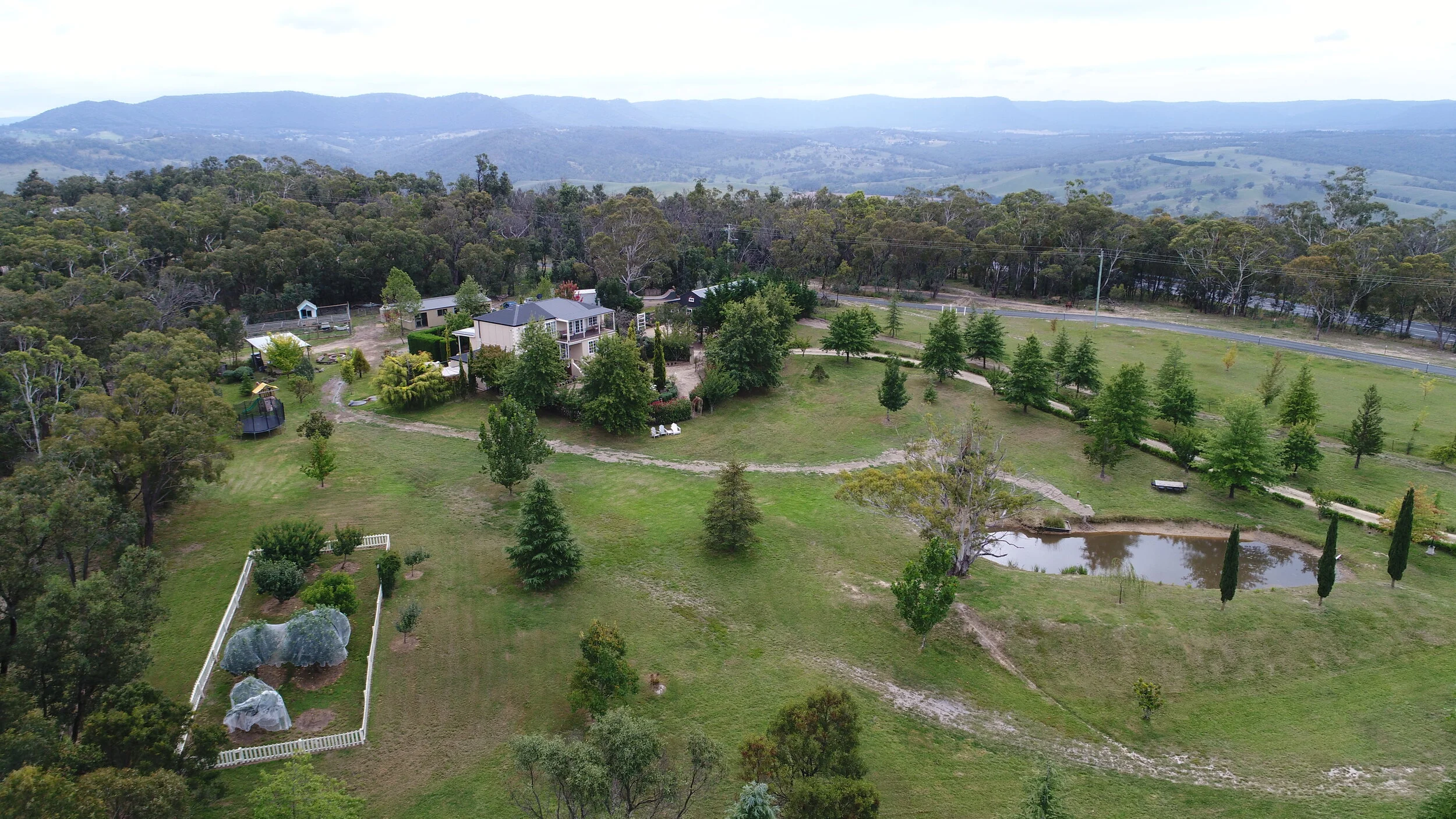 The gardens and forest - the 3 acres surrounding the main house and barn include beautifully manicured European and Japanese gardens, an organically grown vegetable patch and orchard, chicken pen, and a dam on the rolling front lawn. The remaining 12 acres of the property is sprawling Australian bush land overlooking neighbouring paddocks and valleys.